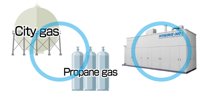 ● We produce and supply hydrogen on-site by installing hydrogen generation equipment (HYSERVE) on the customer's premises.